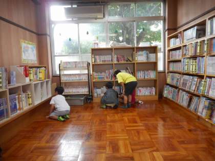 絵本・図鑑・小説など様々な本が置いてある図書館に目が輝いていました。