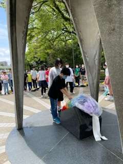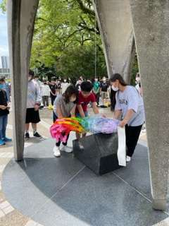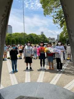大枝小学校の児童みんなで、平和への祈りを込めて作った千羽鶴を捧げました。