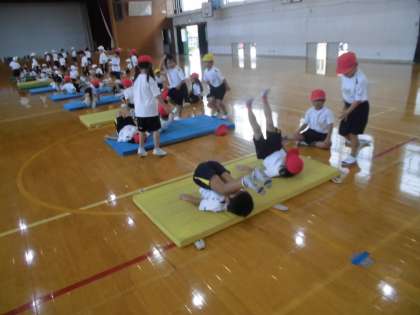 マットの準備後片付けも学んだ子どもたち。今日は上手にできていました。