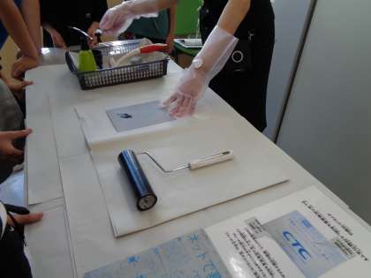 また、輪転機での製版の仕方を、実際に手作業で見せてもらいました。版画のような印刷方法とは違って、驚いていました。