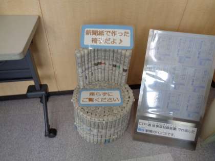 また、新聞紙で作ったバッグやいすなども展示してあって、このような作品が作れることに驚いていました。