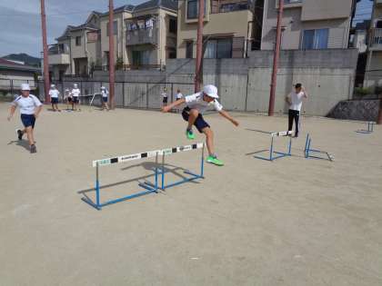 初めは、「跳べるかな、転ばないかな・・・。」と不安そうな様子でしたが、一度跳ぶと自信がつき、楽しんで走っていました。