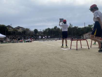 午前の部・休憩前の種目、「6年生 ハードル走」。
