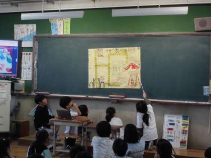 本日は、4年生の総合の学びを共有する活動を行いました。