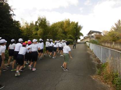 6年生は去年と同じく約3kmのコースを走ります。天気にも恵まれ、心地よい風を感じながら、コースの確認ができました。