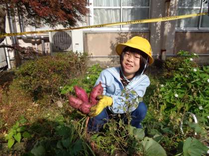 スコップで掘る時は、サツマイモを傷つけないようにそっと、そーっと掘りました。