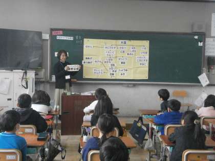 国語科「すがたをかえる大豆」で学習している大豆のもつパワーについて、お話を聞かせてもらいました。