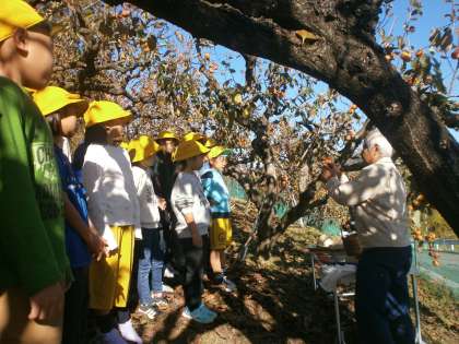 子どもたちは大きい柿を選んで楽しそうに収穫していました。