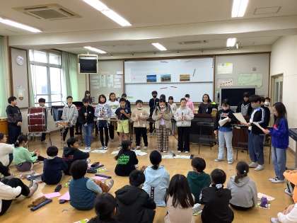 それぞれのクラスの演奏を聴き合ったり、全員で合奏したりしました。