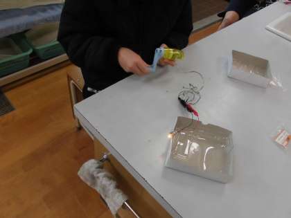1月15日(月) 6年生 理科「手まわし発電機」