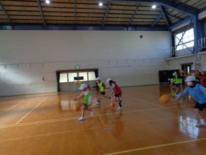 ドリブルやシュート、パスの練習をし、その後に試合をしました。