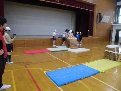 高さに挑戦したり、新しい技に取り組んだり、楽しんで学習しています。