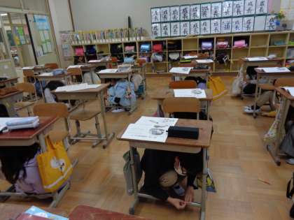 地震の時は、教室の扉や窓を開け、カーテンを閉めること。火災が発生したら、窓を閉めてカーテンを開けることなどを確認し、なぜそうするのかも話し合いました。