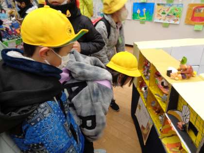 現地では、自分の作品(平面・立体)を見たり、市内のお友だちの作品を見たりしました。