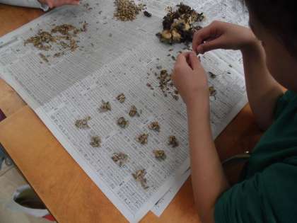 JA大枝さんから頂き、学校に咲き誇ったひまわりの種を算数科の「1000までの数」の学習を活用してみんなで数えました。