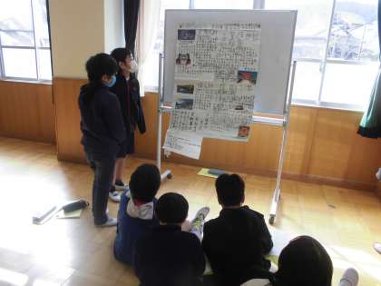 各クラスで作った「世界遺産新聞」の交流をしました。