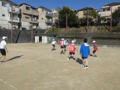 チームで攻め方や守り方を工夫して、試合を楽しんでいました。