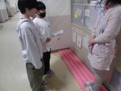 手作りしたぞうきんのプレゼントを届けにいきました。