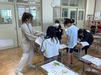 繰り返し言う練習をすることで、全員が英語を使って活動することができました。