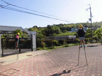 朝休みの竹馬広場の様子です。