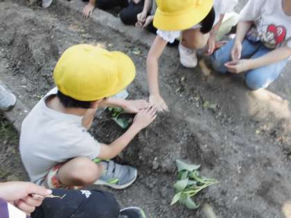 秋に実施する芋ほりに向けて、いもの苗を植えました。
