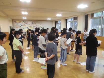 進行係の児童が前に立って、実際と同じような形で練習を進めました。