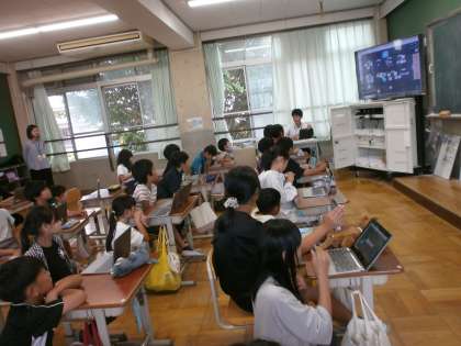 グループごとにテーマをもち、ロイロノートで共同作業をします。初めてのことで、慣れない作業ですが、みんなで声をかけ合い相談しながら、協力して取り組んでいます。