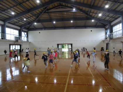 今日は1・2時間目のプールが雨天で入れなかったので、学年で集まって、握力を測ったり三角鬼ごっこをしたりしました。