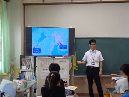 今日は、授業の最初に教頭先生の「My Summer Vacation.」を聞きました。