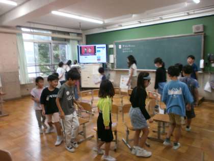 あそびでは、椅子取りゲームをしたり、ジェスチャーゲームをしたりしました。