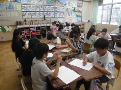 グループに分かれて、それぞれがたくさんある熟語を仲間分けしていました。普段何気なく使っている漢字の意味に触れることができ、子どもたちの中でも多くの驚きと発見があったことと思います。