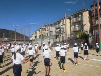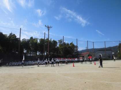 秋晴れの中、全校練習が1・2時間目にしました。