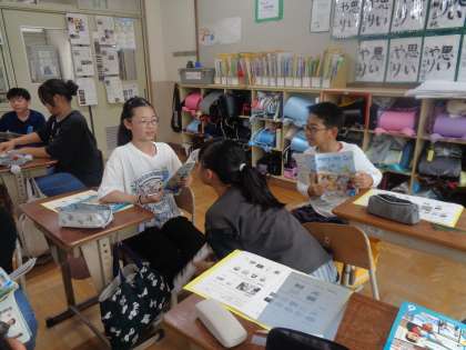 日本語の語順との違いも感じながら、伝え合いました。