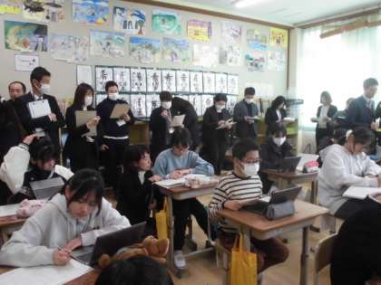 公開授業後の事後研究会では、積極的な議論が交わされました。