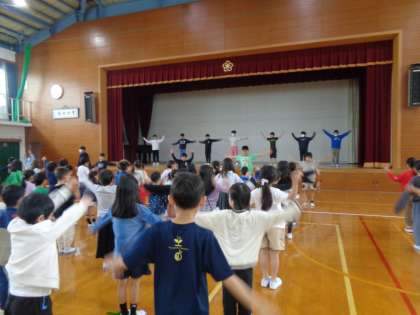 運動委員さんのお手本を見ながら、1年生も頑張っていました。