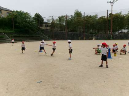 体育科では「リレー」の学習を進めています。今日はバトンを受け取る姿勢を意識しながら計測しました。