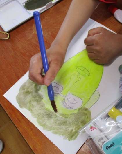 絵の具セットに入っている「はだ色」ではなく、一人ひとりの肌にあったはだ色作りを心がけて、色作りを楽しんでいます。