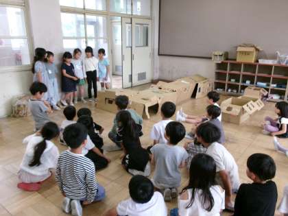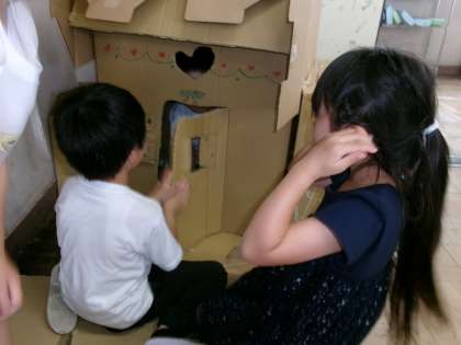 6月12日(木)2年生 図工「だんボールに入ってみると」その2