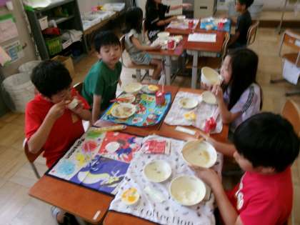 今日は給食でみかんゼリーがでました。前日から楽しみにしていた児童も多く、とても嬉しそうな様子でした。