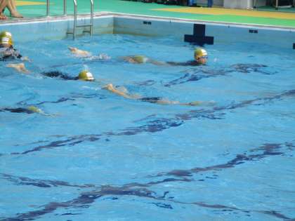 3年生と合同で水泳学習を進めています。前半のねらい1では、けのびの練習をしたあと、バタ足をしたり、自分ができる泳ぎ方で短いコースを泳ぎました。後半のねらい2では、自分のめあてに合わせて場所を分けて練習をしました。プールから子どもたちの歓声が響いていました。