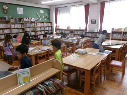 今日は学校図書館に夏休みに読む本を借りに行きました。一人4冊、いろいろな種類の本を選びました。