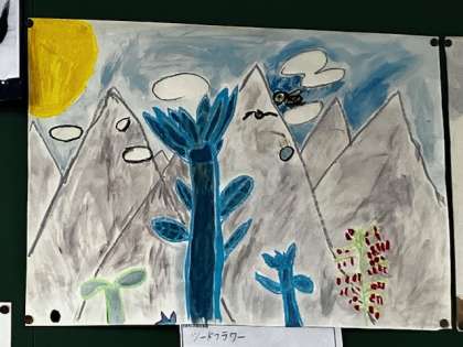 また、今回は絵の具の3現職で色作りをすることを楽しみました。赤・青・黄の3色で無限に色を作り出すことができます。自分だけの緑色、オレンジ色、と本当に美しい色で表現することができました。みんなの色のセンスに花丸を贈ります。