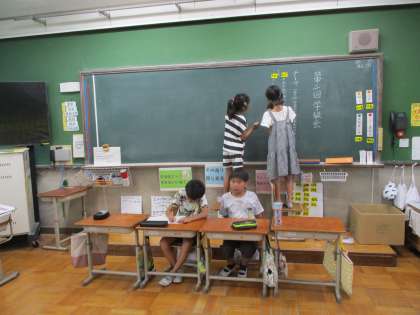 1学期の最終日にお楽しみ会をしました。転出する2人の友達にとってはこの日が最終日となるので「2学期もがんばろう会」という名前で楽しい会になるよう話し合いを進めてきました。(画像は、がんばろう会に向けて話し合いをした、第二回学級会の様子です)