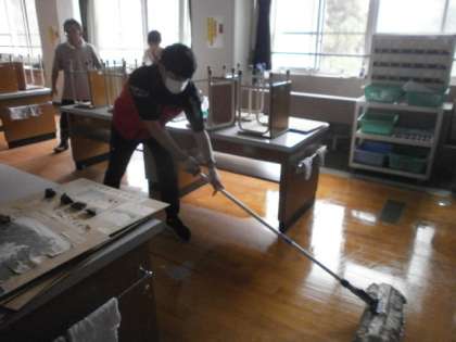 この日は、まず午前に、教室や理科室のワックスがけを行いました。