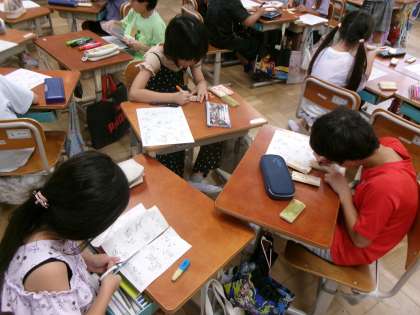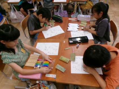 四つ竹ができた後は、仕上げでイラストを描きました。自分だけの四つ竹づくりができて、嬉しそうな様子でした。