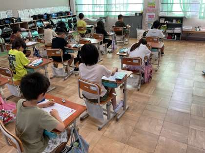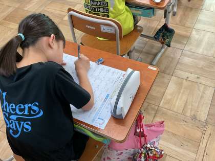 今日は1学期に習った漢字を復習するテストをしました。事前にしっかりと自分で勉強してから臨んでいる分、少し緊張しながら解いている様子がありました。