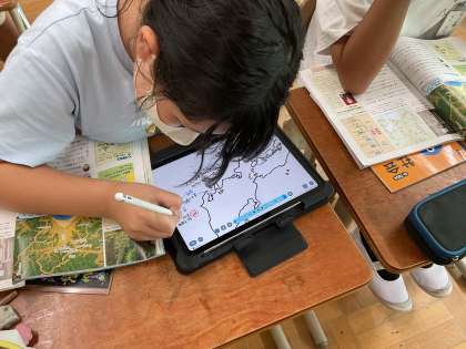 教科書からキーワードを探して意味を調べたり、白地図に整理して領地について知ったりする様子が見られました。