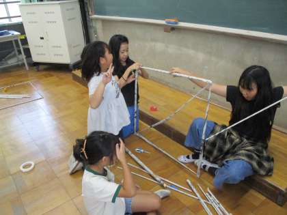 テントを作ったり、ロケットを作ったりしているグループもありました。世の中の造形物がいかに工夫して作られているかということを実感した子どもたち、みんな本当に楽しそうでした。