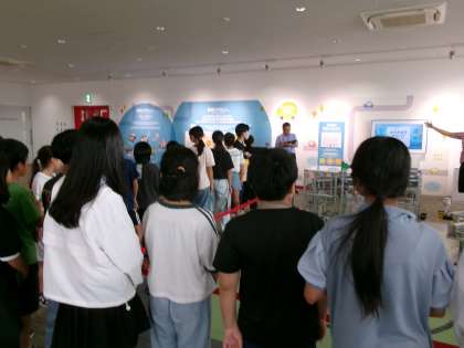工場の中の人が効率的に、そして安全に働けるための工夫を、実物を見せてもらいながら学びました。