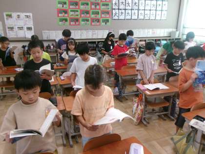 国語科では「ちいちゃんのかげおくり」の学習を進めています。国語の時間には初めの5分間を使って、音読の練習をするようにしています。日々の宿題での練習もあってか、スラスラ読める人も増えてきました。